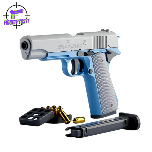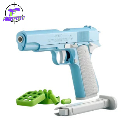 Titaani FidgetPyssy tulee 9 ulosheittävän hylsyn kanssa. Poista vain lipas, lataa hylsyt ja ammu – katso, kun ne sinkoutuvat ulos!